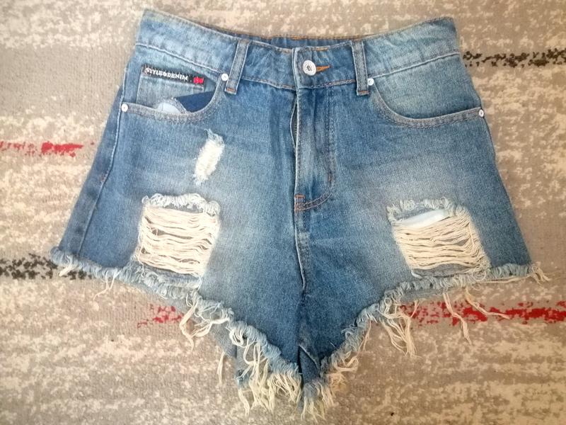 Короткие джинсовые шорты. Длина - 31 см. Полуобхват бедер-46. На бирке указан размер 25.