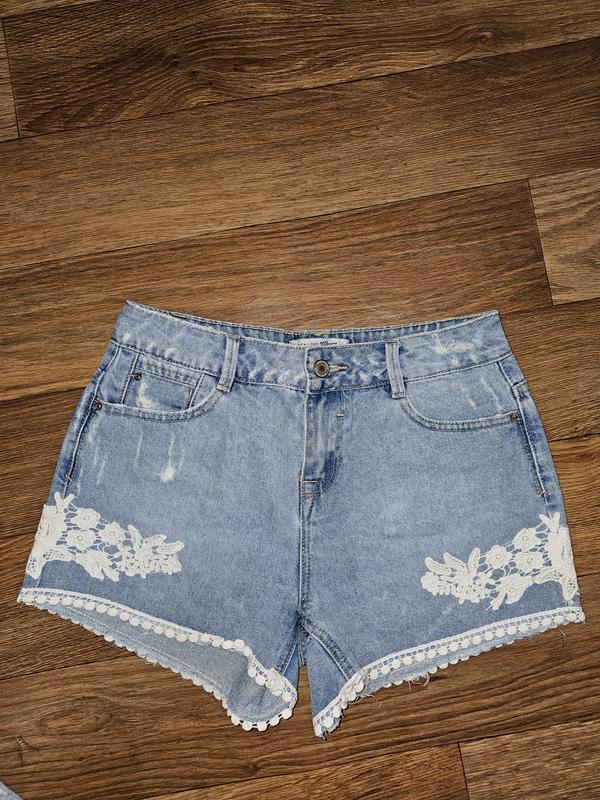 джинсовые шорты с вышивкой полуобхват пояса 35 см полуобхват бедер 46 см длина по боковому шву 28 см