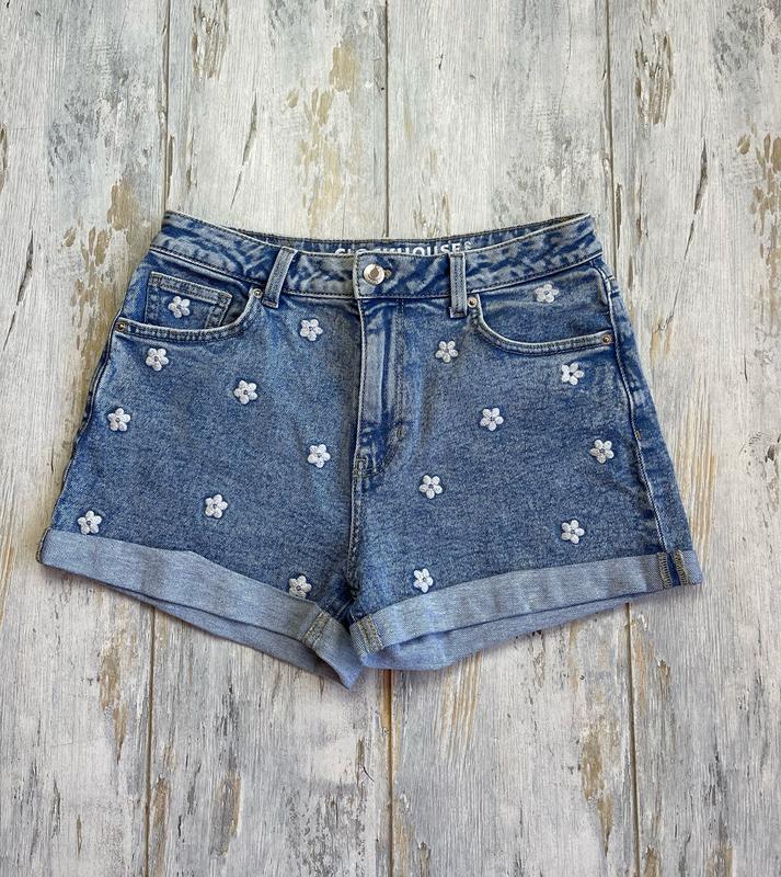 🔸Дууууже класні джинсові шорти 🤩 🔸Розмір М 🔸Стан ідеал . Заміри: по пояса - 36 см по бедер - 50 см посадка - 28 см довжина по зовнішньому шву - 31 см