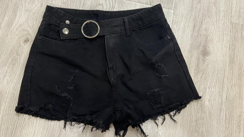 Джинсовые шорты черного цвета. З потертостями. Хорошо садятся по фигуре. Стан идеален. Замеры на фото