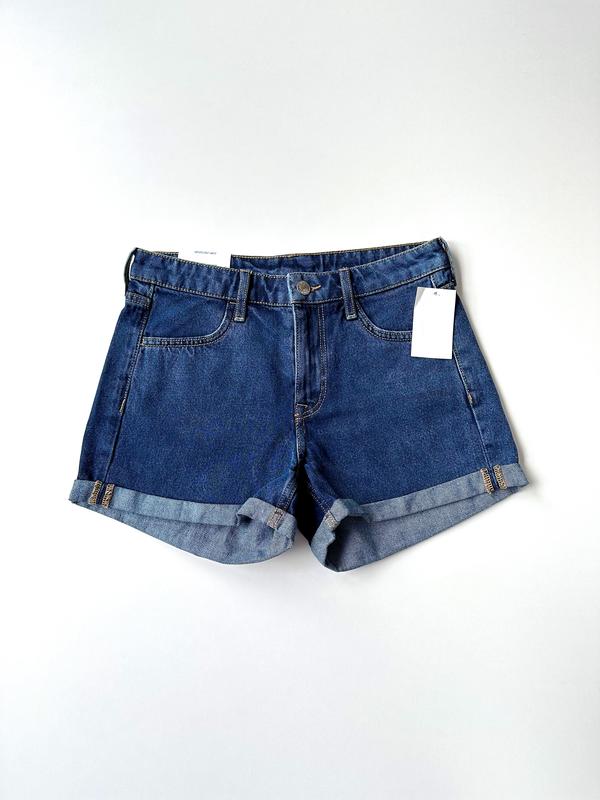 Шорти синього кольору H&M💎 Розмір - 34/XS/S Орієнтуйтесь на заміри які вказані нижче Довжина виробу - 26см. Обхват поясу - 70 см. Обхват стегон - 90 см. Внутрішній шов - 7 см. Посадка - 29 см. Низ пів обхват - 27 см. 100% котон
