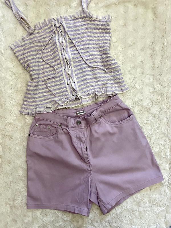 Коттоновые шорты на 46-48, хорошо тянутся и садятся по фигуре. Заміри на фото. По всем вопросам- пишите!