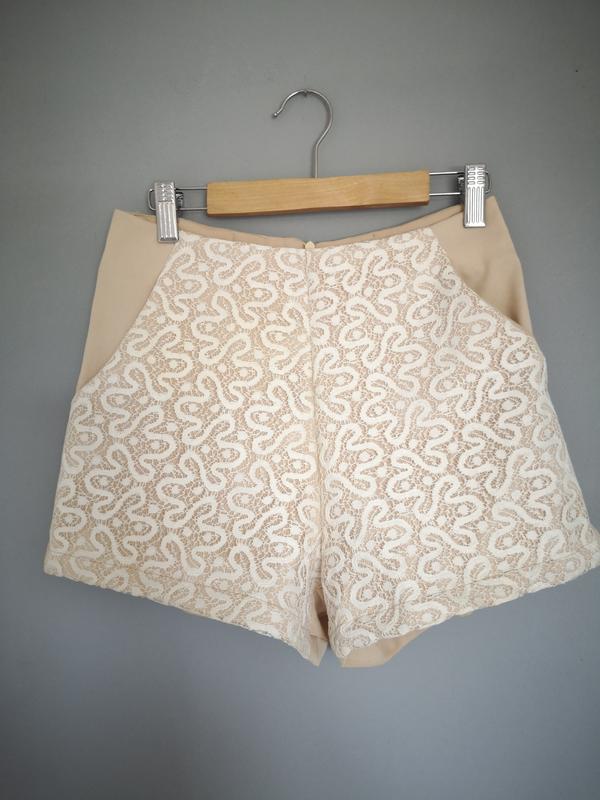 Стильные шорты с классным отделом спереди. Размер S. Без дефектов. Полу объем талии 31 см. Длина шорт 34см.