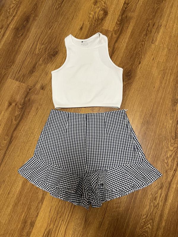 Классные Шортики с эффектом юбочки, размер XS. Состояние новых. Последнее фото на мне. Топ белый в подарок🎁