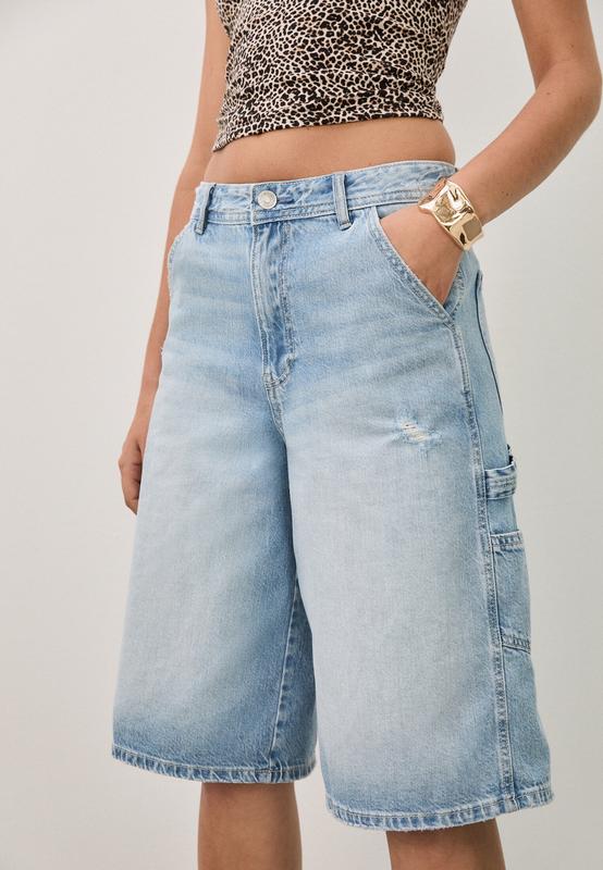 Цена 1150 грн 5-7 дней! Джинсовые шорты средней посадки с карманами спереди. По бокам и сзади накладные карманы. Прямая нога. Застежка спереди на молнию и металлическую пуговицу. СИНИЙ ДЕНИМ <unk> REF. 1383/364/701