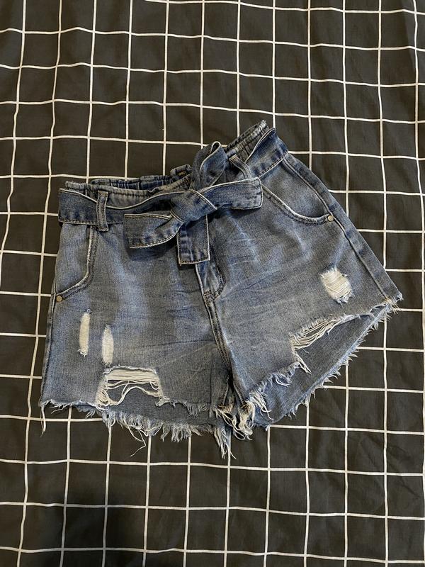 Шорты на резинке сзади+джинсовый пояс (снимается ) Состояние новых, не подойти размер Замеры на фото, размер с )