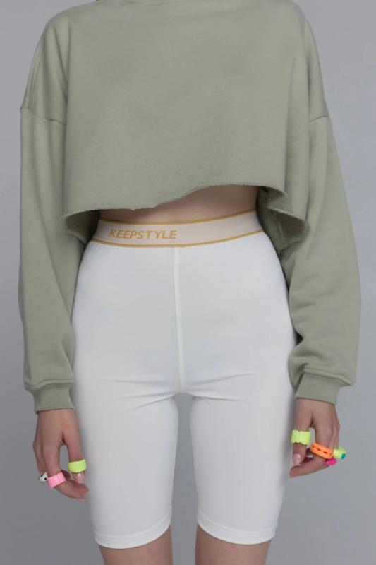 Велосипедки укр бренду Keepstyle Цвет молоко выполнены из эластичного бифлекса, они облегают тело и не сковывают движения Велосипедки имеют акцентную брендированную резинку, высокую посадку и длину выше колена, слегка просвечивают Размер L