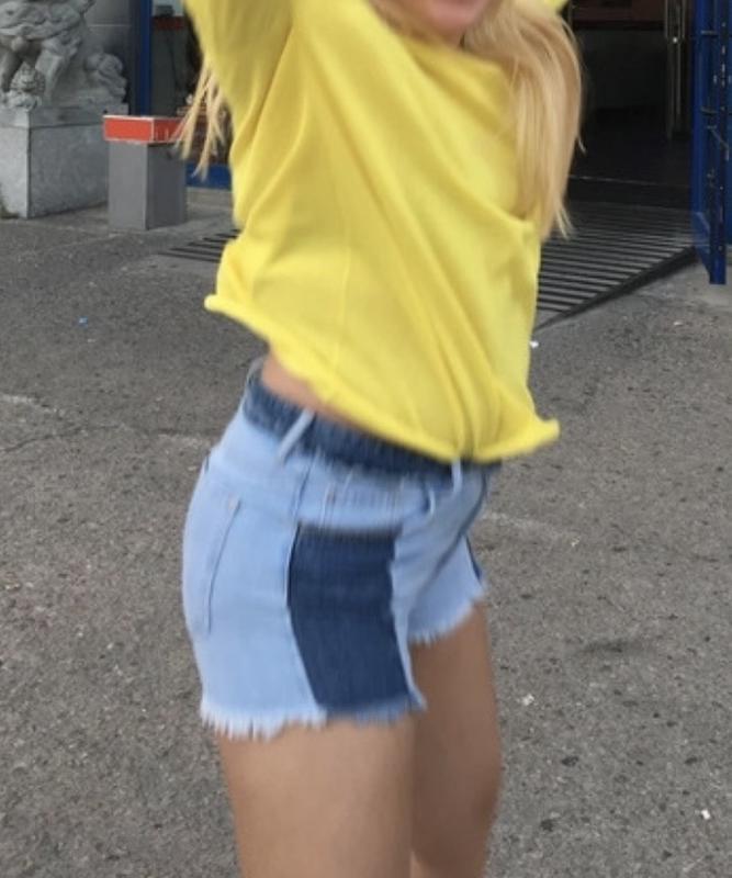 Короткие джинсовые шорты с вставками. Ширина 43 см Длина 32 см