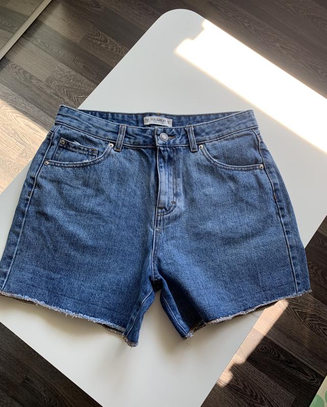 Джинсові шорти синього кольору Розмір М Довжина 36 см, напівобхват талії 37 см, напівобхват стегон 52 см, посадка попереду 29 см Цупкий, якісний джинс Стан ідеал