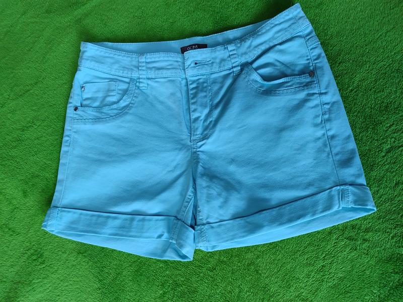 Джинсові шорти, блакитного кольору. Розмір 34 Напів обхват талії 37 Напів обхват бедер 43 Довжина 28