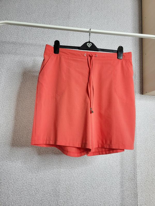 Шортики Указан размер: 16 ПОТ: 45 см (потянется до полуобхвата 55 см, сзади на резинке., можно затянуть) ПОБ: 60 см Длина: 49 см Состояние: идеальный 65% polyester, 35% viscose
