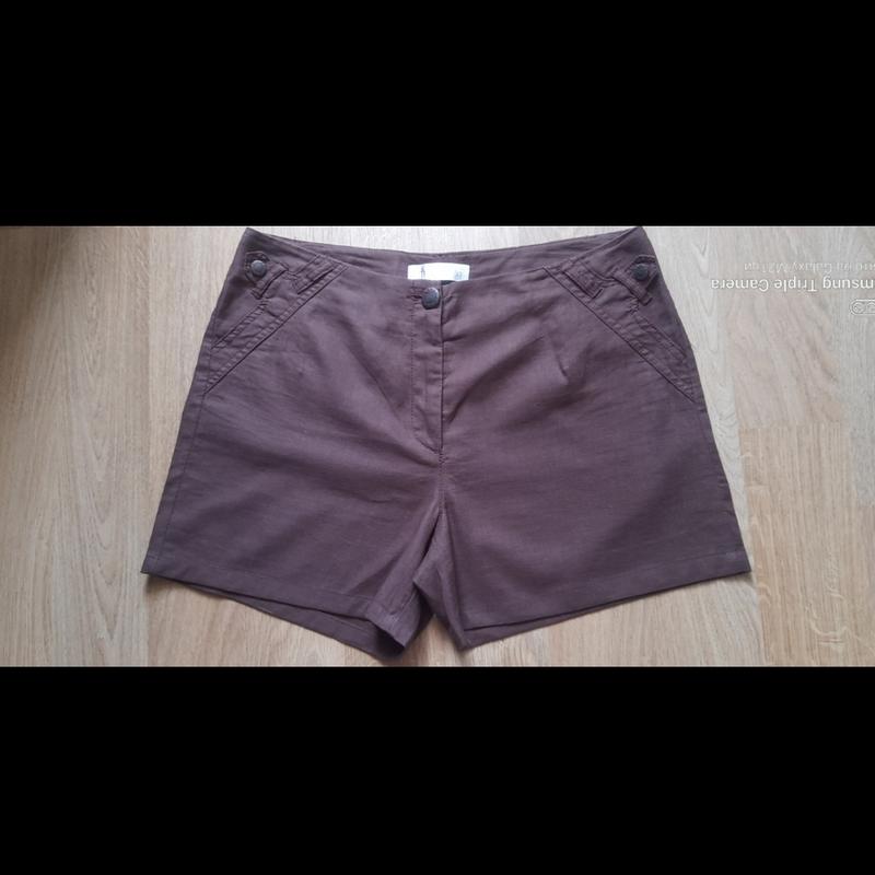Шорти, пот 43, поб 53, длина 34, размер 48 наш. Хорошо пошиты, красиво лежат на фигуре.