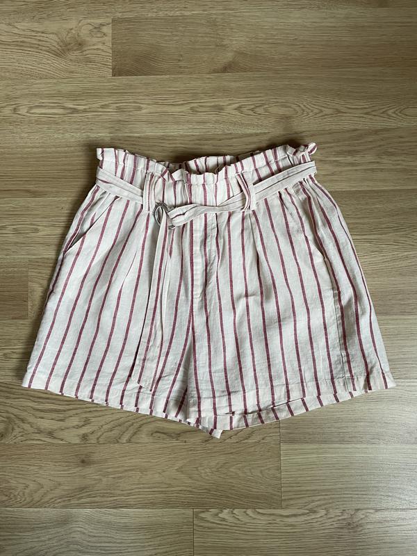 Легкі лляні/бавовняні шортики з кишенями та на поясі. Розмір на 36-38 (s-m). Заміри: довжина бокового шву 38 см, висота посадки 35 см, пів обʼєм талії 35 см, резинка тягнеться до 45 см)