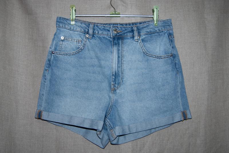Шорты джинсовые H&M Divided, сделанные в Бангладеш, размер 40. Имеют 4 функциональных кошени. Замеры: Талия - 40,5 см. Длина бокового шва 35 см. Посадка спереду – 33 см. Посадка ззаду – 42,5 см. Состав: 100% коттон.