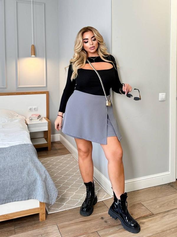 Юбка - шорти Мод 228 🍒 Цена: 560 грн Тканина: костюмка Цвет: черный, серый, капучино Размер: 48-50; 52-54; 56-58; 60-62 Замеры: 48-50 от 82 см, об 120 см, довжина 41 см. 52-54 от 94 см, об 126 см, довжина 43 см. 56-58 от 100 см, об 134 см, довжина 45 см. 60-62 от 108 см, об 146 см, довжина 47 см.