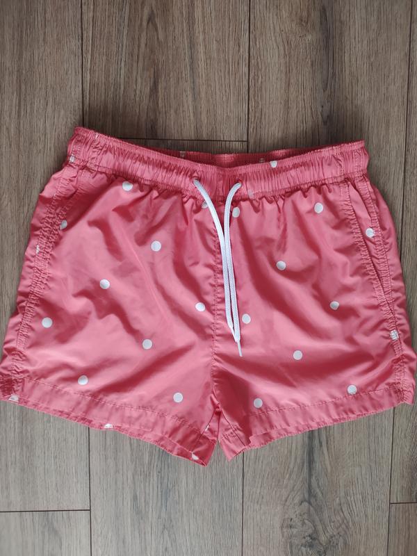 шорты в горошек, цвет кораловый на подкладке по бокам карманы размер S полу обхват талии 35-45 см полу обхват бёдер 48 см длина шорт сбоку 33 см высота посадки спереди 29 см высота посадки сзади 38 см очень красивые шортики, ткань как плащевка