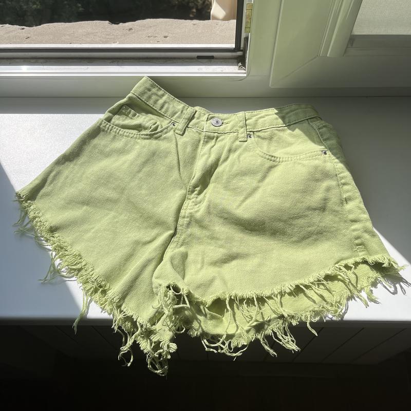 Шорты приятного зеленого цвета в абсолютно идеальном состоянии без каких-либо дефектов. Сзади немного удлиненные. Размер S, также подойдет на XS