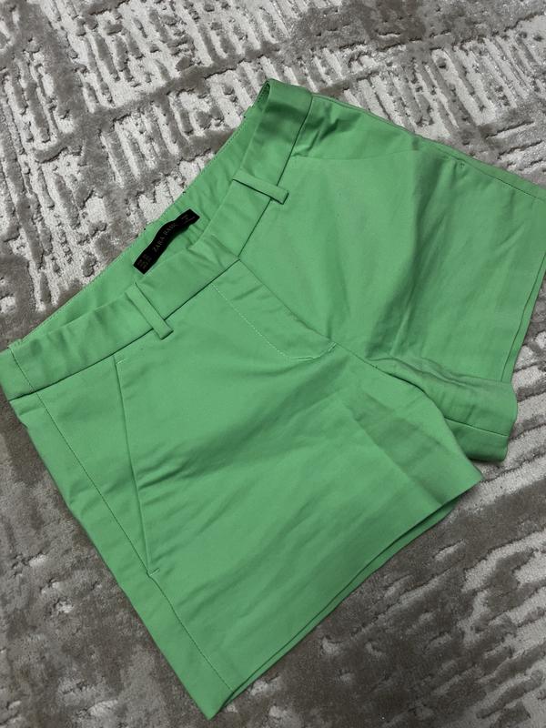 Красивые салатовые шорты Zara, плотная ткань, очень качественно прошиты.