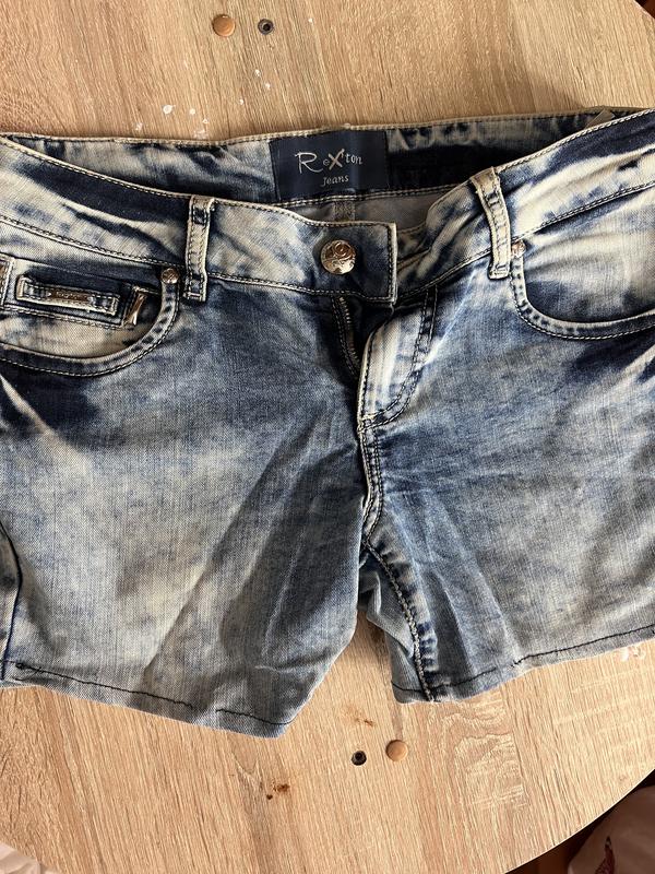 Короткие джинсовые шорты, из недостатков оторованная одна лямка сзади, можно легко пришить