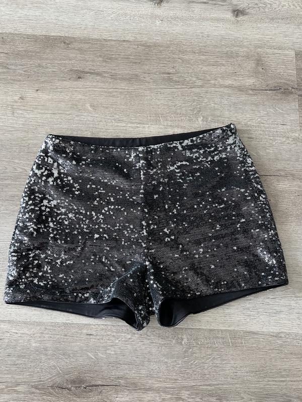 Черные короткие шорты в пайетках. Размер xs-s.