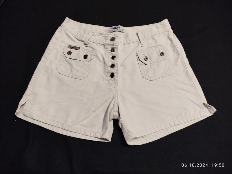 Классные и качественные джинсовые шорты в очень хорошем состоянии светло-серого (ближе к белому) цвета. Полуобхват по поясу 40 см, длина по внутреннему шву штанины 9 см, длина по внешнему шву штанины 35 см, высота посадки 26 см, полуобхват бедер 52 см. Ткань хлопок, не тянется. Модель 5044