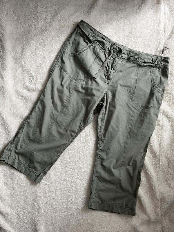 Шорты за колено, бриджи Летние, коттоновые На одной штанине есть микро пятно Замеры: длина 80, по талии 51, затягивается, бедра 63