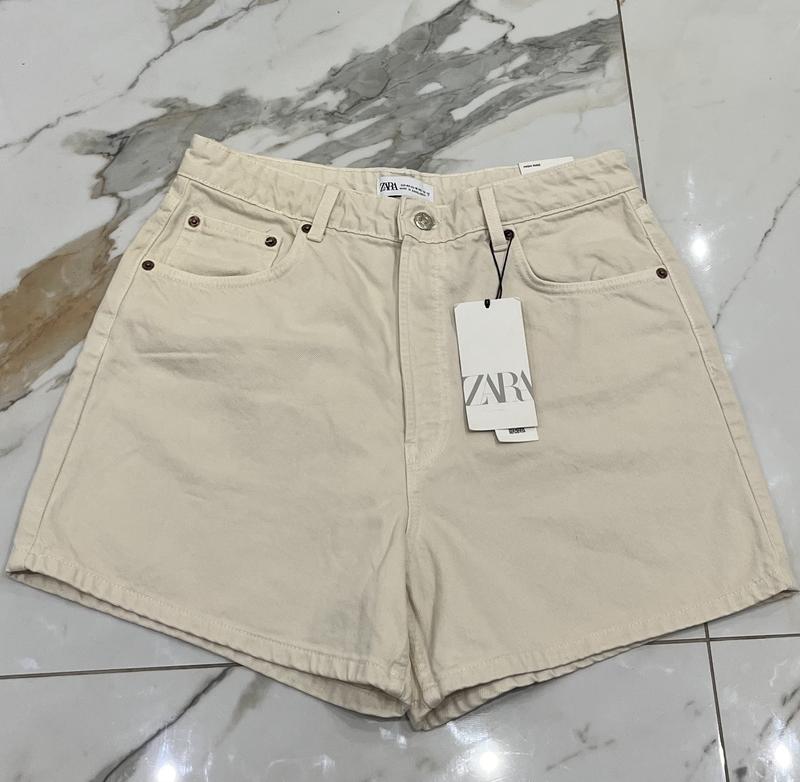 Кремовые джинсовые шорты ZARA с высокой талией Размер 42
