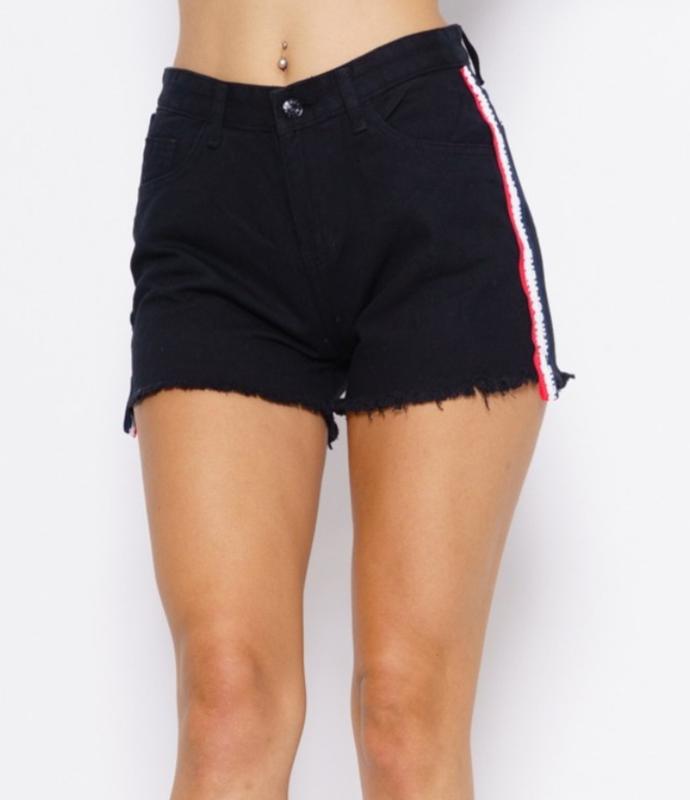 Джинсовые шорты с полосками по бокам сзади и передом.Очень удобные, приятные к телу.