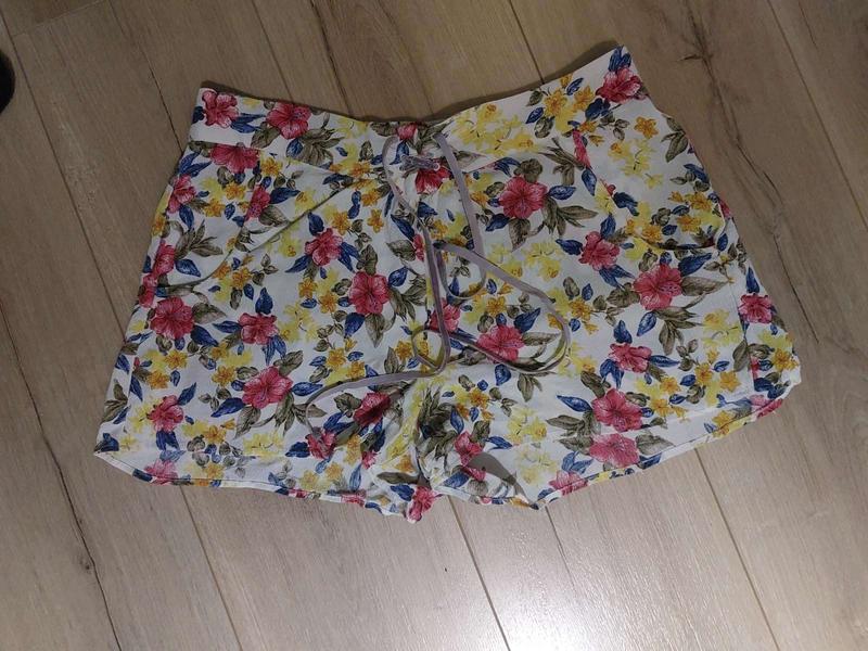 Летние вискозные шорты ZARA в цветочный принт с карманами. ПОТ 37, ПОБ 50