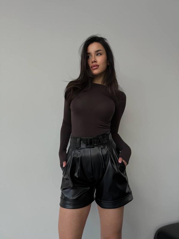 🔥В наличии Фото реал ❤️Шорты с ремнем Ткань: Качественная эко-кожа Размеры:42-44;46-48 ✔️Высокая посадка шорт ✔️Отлично сидит по фигуре замеры 42-44 ПОТ-32 см ПОБ-50 см Длина -42 см 46-48 ПОТ-35 см ПОБ-53 см Длина -43 см