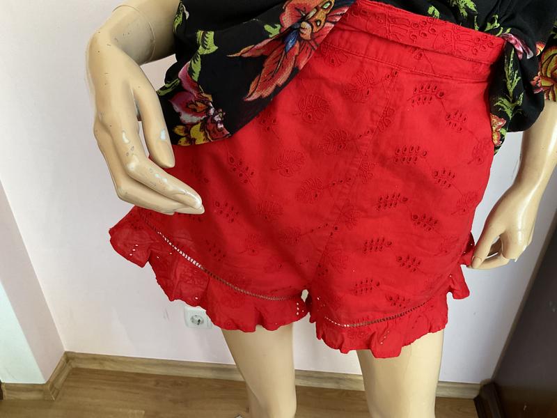 Красивые качественные оборкие шорты. На подкладке. Без дефектов. Замеры в груди- резинка. В таліі44-46 см в бедрах 60 см довжина 34 см ширина штанини 39 см посадка перед 35 см зад 43 см 30:1:25