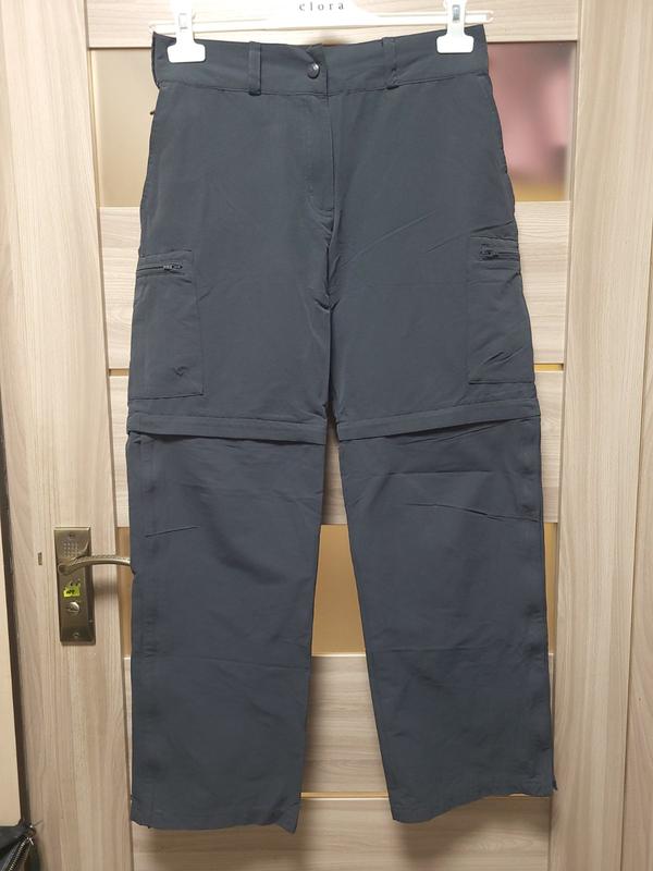 Штани шорти в ідеальному стані. Розмір вказаний М. Тканина плотна зовсім трошки тягнеться. Відстібається на блискавці штани на і маєте шорти. Штанина розстібається. ПОТ 38см тягнеться до 43см ПОБ 54см Довжина штанів 98см Довжина шортів46см.