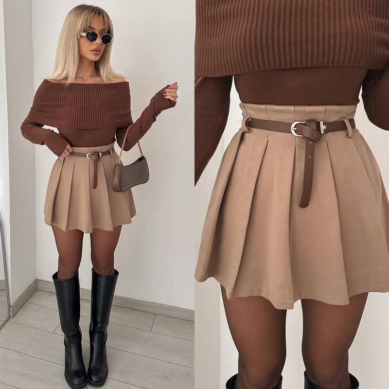 Юбка - шорты арт. don. 225 Тканина: костюмка Размеры: 42-44, 46-48 Цвета: черный, мокко, светлый беж, шоколад В комплект входит пояс! Юбка-шорты сзади на резинке, карманы - обманка.