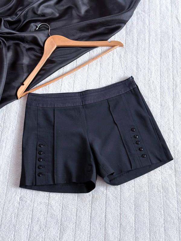 ❗️ УВАГА ❗️ Доставка СМАРТ тільки після повної оплати на карту Міні шорти BGN По бокам декоративні ґудзики В гарному стані Костюмного плана тоненька тканина ( пояс атласний ) Склад зрізала, заважав Збоку на блискавці Розмір 38 ( М ), орієнтуйтесь на заміри Бокова довжина 33 Ширина шорт внизу 28 Пояс 39 Бедра 48-51 Посадка 23 150 грн