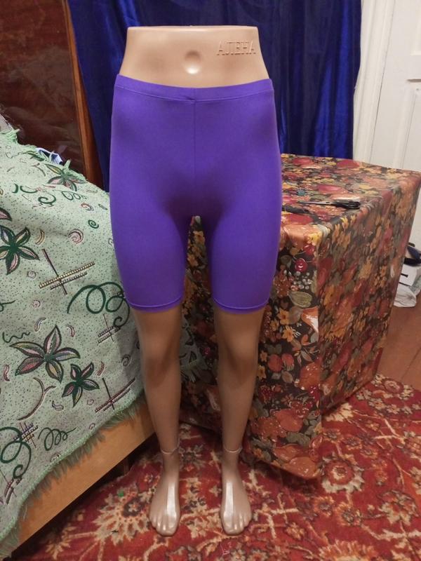 очень красивые фиолетовые шорты. Ткань ластиковая, хорошо тянется. Размер 2хс, хс. опис состояние отлочный длина 38 пояс и пот 27 ширина бедер 35 посадка 22