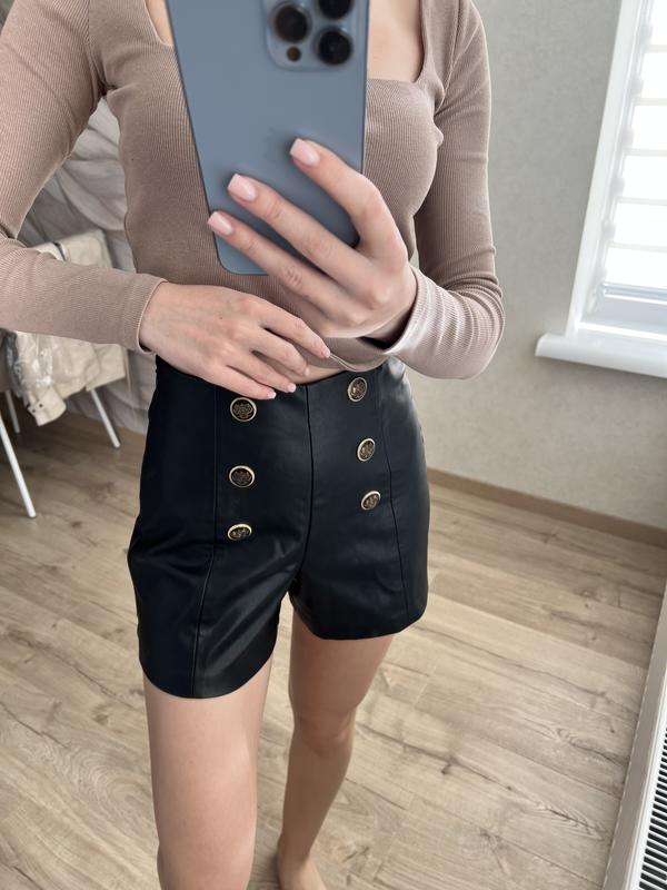 Кожзам шорты, хорошее качество, не трескается вообще Размер 32 На узкую талию и бедра
