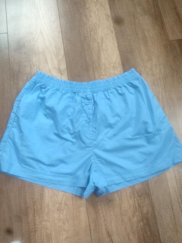 Коттоновые шорты трусы H&M.Размер С подойдет и на М.Очень красивый голубой цвет.В поясе на резинке, без завязки.ПОТ 36+ тянутся.