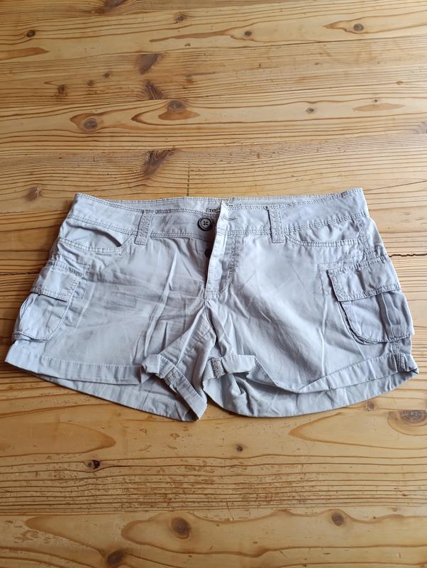 Голубые шорты с карманами из хлопка размер S.Замеры: пояс 49 см, длина 25 см,шарный шов 8 см, посадка 17/31 см