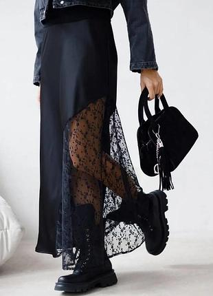 Юбка длинная шелковая с кружевом