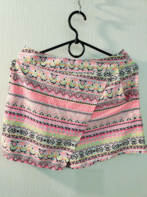 В идеальном состоянии шорты юбочка на девушку 46-48р. Длина с поясом до низа 34см, длина с поясом до памперса 37см, талия 34см, бедра 44см.