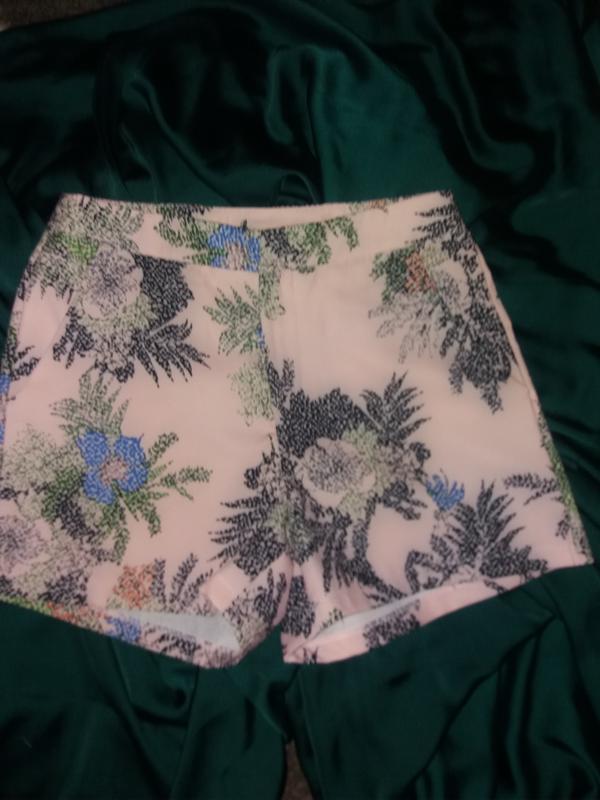 Шорты летни нежно розового цвета с цветами;новые с сборкой Jaine Rouge;размер S ПОТ 37;ПОБ 46;длина 34смв вкладчика есть эластан, тем более, что чуточку тянутся.Серый топ в подарок.
