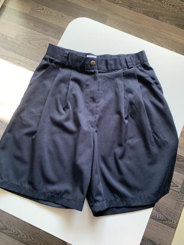 Бермуди синього кольору Розмір С У складі 35% віскоза, 65% поліестер Довжина 49 см, напівобхват талії 35 см, напівобхват стегон 57 см, посадка попереду 34 см Стан ідеал
