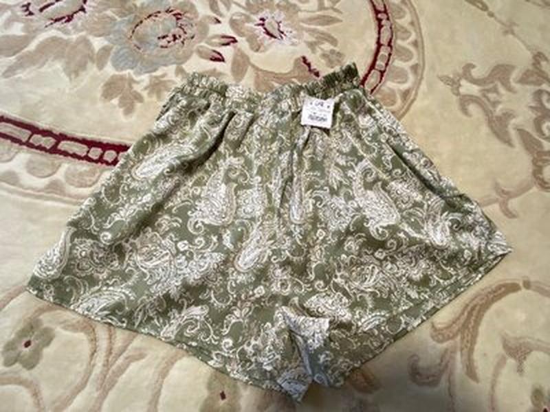 Классные шорты из не мнещейся тонкой ткани. Размвр М указано, на С тоже подойдут. Пояс - 31см, поб- 59см, длина - 36см, передняя посадка - 36см, задняя - 45см, штанка на выходе - 38см в полуобъеме.