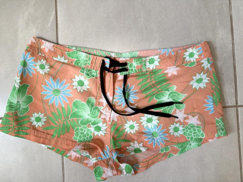 Міні шортики, розмір і тканина не вказані , десь на С, див заміри Тканина легесенька і приємна до тіла Не дуже помітна плямка на останньому фото ПО пояса по самому верху в не розтягнутому вигляді 41 Довжина збоку 22