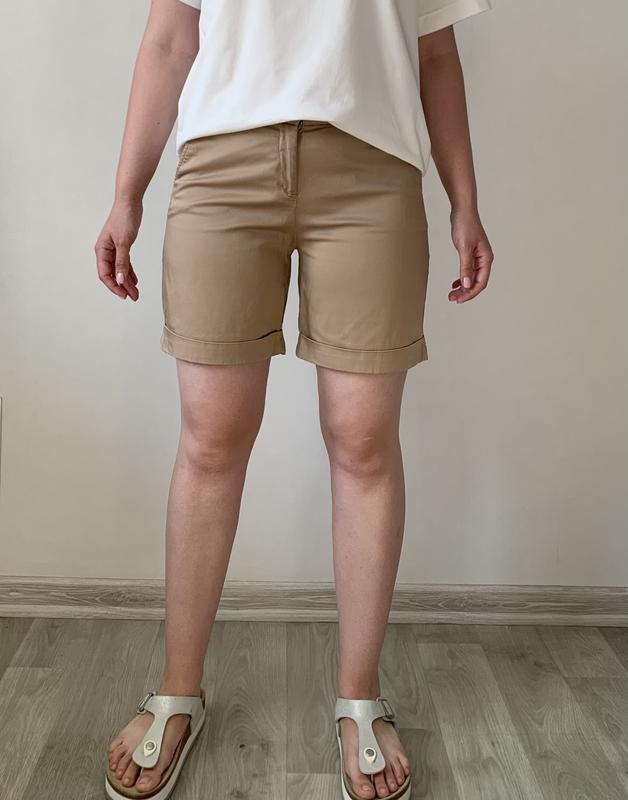 Бермуди бежевого кольору Розмір 40 Бірка відсутня, на дотик катон Довжина 42 см, напівобхват талії 40 см, напівобхват стегон 50 см Стан ідеал