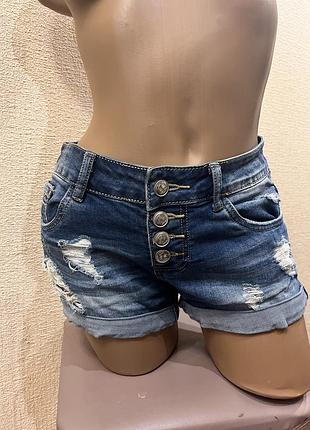 Стильные джинсовые шорты. Отличное состояние и качество. Размер С. Длина 27 см. Пот 37+ см. Поб 44+ см. Шаговый шов 6 см. Материал тянется. Оплата на карту ПриватБанка. Отправка УП, НП.