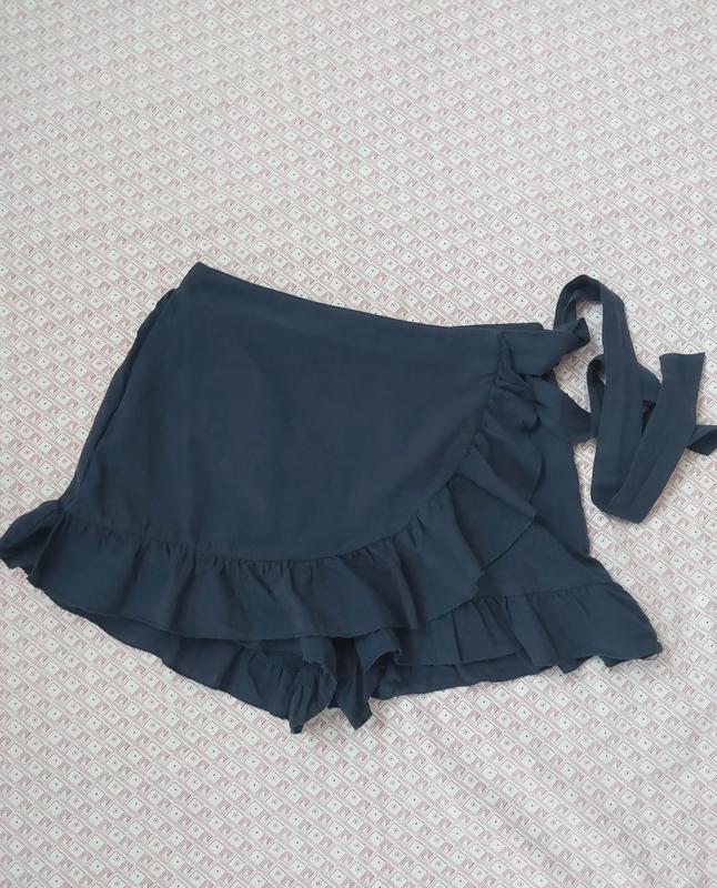 Короткие шортики с имитацией юбочки. Довжина 32 см. По поясу 34 см, ззаду резинка.