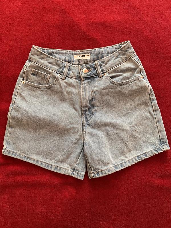 Шорти, стан нових. Купила минулим літом, одягнула декілька разів, потім через вагітність не носила, а цим літом вони вже замалі. Тканина гарна, цупка. Дефектів немає. Півобхват талії 33 см, довжина від верху до низу 34, штанина 26