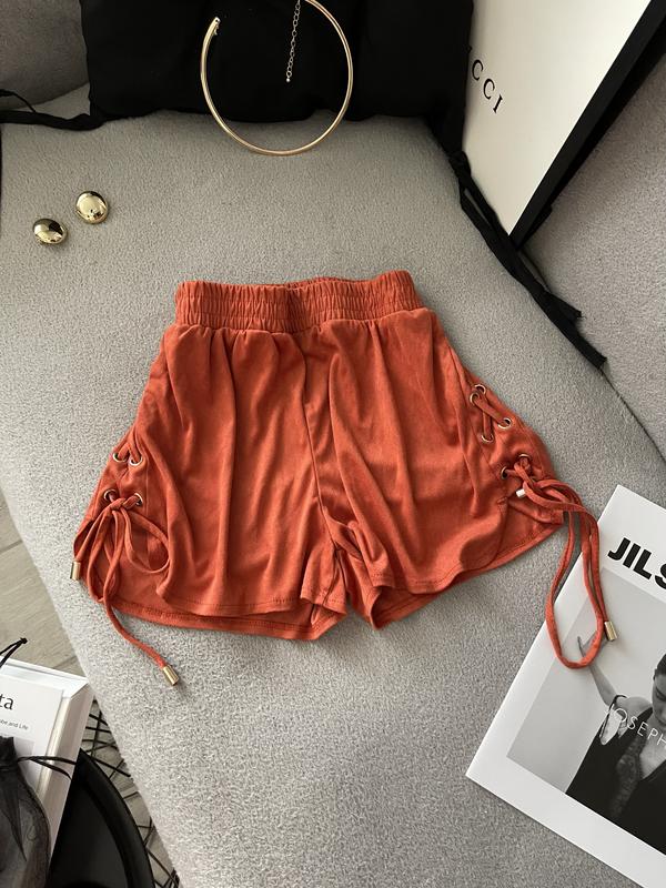 У наявності гарні шортики з люверсами Тканина під замш Дуже стильні 🥰 Пояс: 32-34 см Стегна: 50 см Висота посадки : 30/32 см Висота сбоку: 24/30 см Стан нової речі