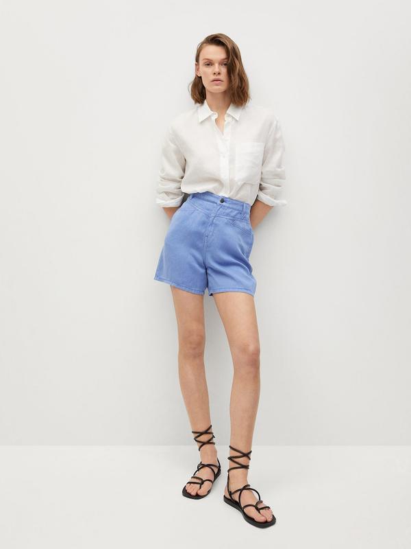 Шортики красиво моделируют фигуру за счет деталей кроя, высокая посадка. Ткань роскошная: лиоцелл и лен. Очень практичная вещь на лето. Бирка с описанием размера и замеры на фото. Подойдет на XS и S.